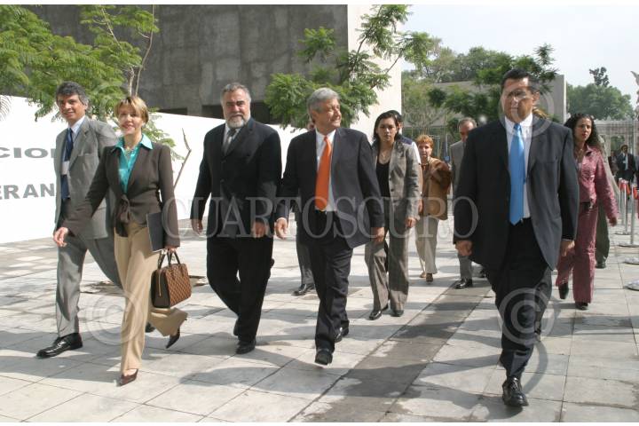 MEXICO, D.F. 28JULIO2005.- Andrés Manuel López Obrador, jefe de gobierno de la ciudad de México y Juan Ramón de la Fuente durante la ceremonia de entrega de la nueva sede de la secretaria de Relaciones Exteriores, que se ubica en la Plaza Juárez. FOTO: Nelly Salas/CUARTOSCURO.COM