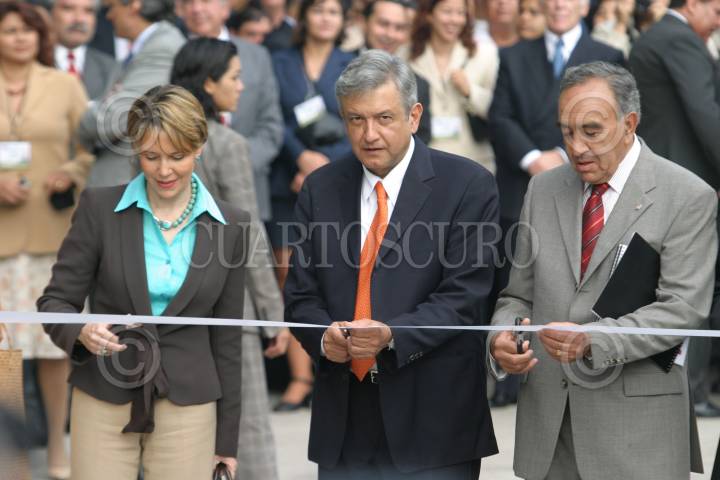 MEXICO, D.F. 28JULIO2005.- Andrés Manuel López Obrador, jefe de gobierno de la ciudad de México y Juan Ramón de la Fuente durante la ceremonia de entrega de la nueva sede de la secretaria de Relaciones Exteriores, que se ubica en la Plaza Juárez. FOTO: Nelly Salas/CUARTOSCURO.COM