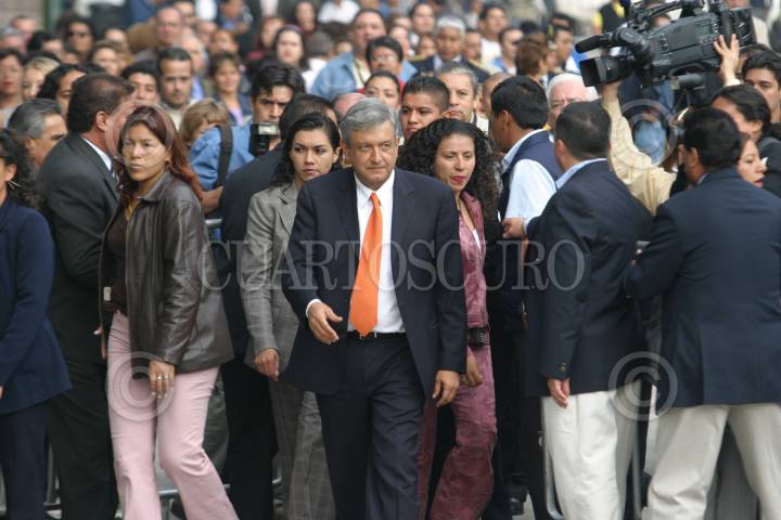 MEXICO, D.F. 28JULIO2005.- Andrés Manuel López Obrador, jefe de gobierno de la ciudad de México y Juan Ramón de la Fuente durante la ceremonia de entrega de la nueva sede de la secretaria de Relaciones Exteriores, que se ubica en la Plaza Juárez. FOTO: Nelly Salas/CUARTOSCURO.COM