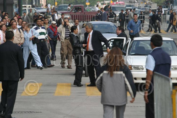 MEXICO, D.F. 28JULIO2005.- Andrés Manuel López Obrador, jefe de gobierno de la ciudad de México y Juan Ramón de la Fuente durante la ceremonia de entrega de la nueva sede de la secretaria de Relaciones Exteriores, que se ubica en la Plaza Juárez. FOTO: Nelly Salas/CUARTOSCURO.COM