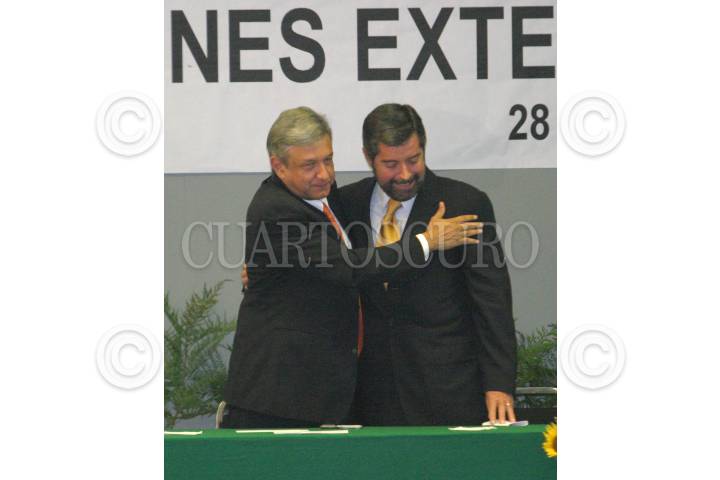 MEXICO, D.F. 28JULIO2005.- Andrés Manuel López Obrador, jefe de gobierno de la ciudad de México y Juan Ramón de la Fuente durante la ceremonia de entrega de la nueva sede de la secretaria de Relaciones Exteriores, que se ubica en la Plaza Juárez. FOTO: Nelly Salas/CUARTOSCURO.COM