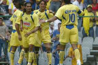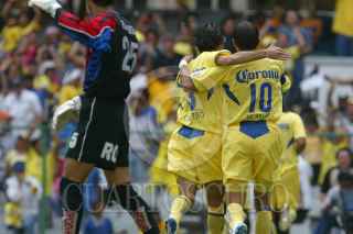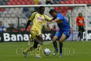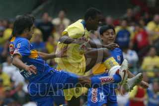 MEXICO, D.F. 31JULIO2005.- Kleber Boas, de las Aguilas del America se disputa el balon,con Sixto Peralta de los Tigres, durante su encuentro en el partido de Apertura 2005. FOTO: Sandra Perdomo \CUARTOSCURO.COM