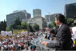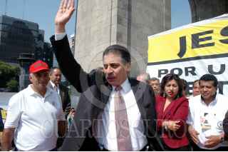 MEXICO, D.F. 01AGOSTO2005.- Jesús Ortega, precandidato del PRD a la jefatura del Gobierno del Distrito Federal, dió a conocer su propueta de transporte, en el monumento a la Revolución. FOTO: Osvaldo Aguilar/CUARTOSCURO.COM