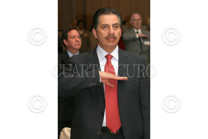 MEXICO, D.F., 19AGOSTO2005.- Alberto Cárdenas, precandidato panista a la presidencia y Jesús Ortega, senador del PRD, durante el foro "Combate a la Pobreza y Progreso Solidario, Desafio Sociedad-Gobierno 2006-2012, en el Centro Libánes. FOTO: Moisés Pablo/CUARTOSCURO.COM