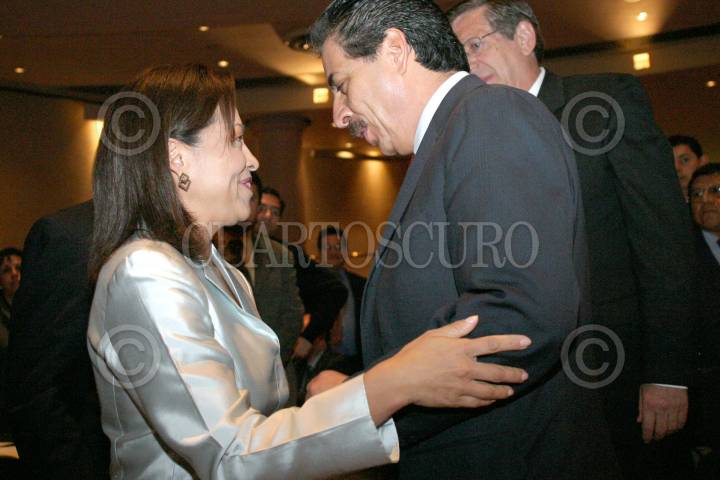 MEXICO, D.F., 19AGOSTO2005.- Alberto Cárdenas, precandidato panista a la presidencia y Jesús Ortega, senador del PRD, durante el foro "Combate a la Pobreza y Progreso Solidario, Desafio Sociedad-Gobierno 2006-2012, en el Centro Libánes. FOTO: Moisés Pablo/CUARTOSCURO.COM