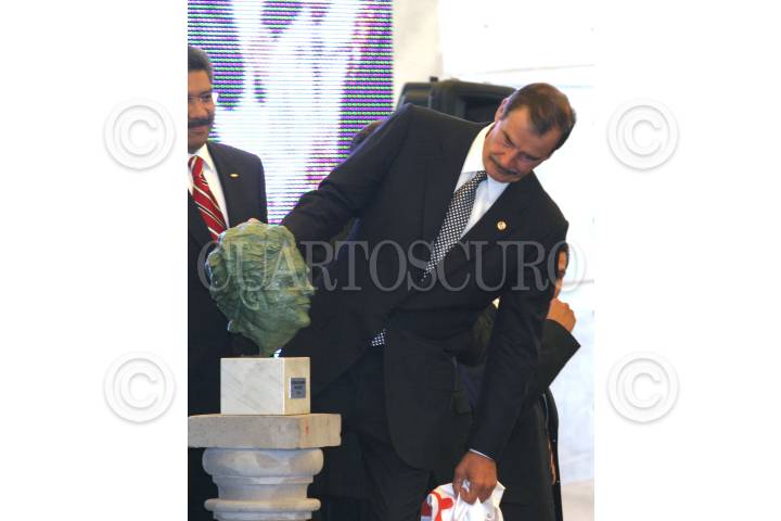 MEXICO, D.F. 19AGOSTO2005.- El ingeniero Nezahaulcoyotl Salvatierra, presidente de la Cámara de la Industria de la Construcción saluda al presidente Vicente Fox durante un desayuno con miembros de dicha organización. FOTO: Nelly Salas/CUARTOSCURO.COM