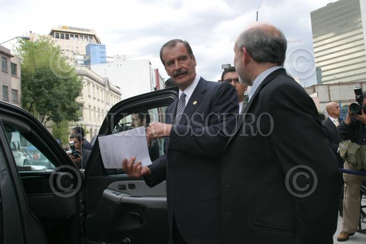 MEXICO, D. F. 19AGOSTO2005.- El presidente Vicente Fox a su llegada a la comida con miembros de la Cámara Nacional de Comercio, Servicios y Turismo de la ciudad de México, con motivo de su CXXXI aniversario. FOTO: Nelly Salas/CUARTOSCURO.COM