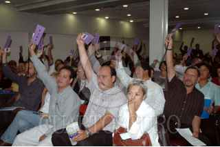 MEXICO, D.F. 20AGOSTO2005.- Ignacio Iri Salomón, Patricia Mercado y Carlos Berumen durante la sesión del partido Social Demócrata campesino. FOTO: Iván Stephens/CUARTOSCURO.COM