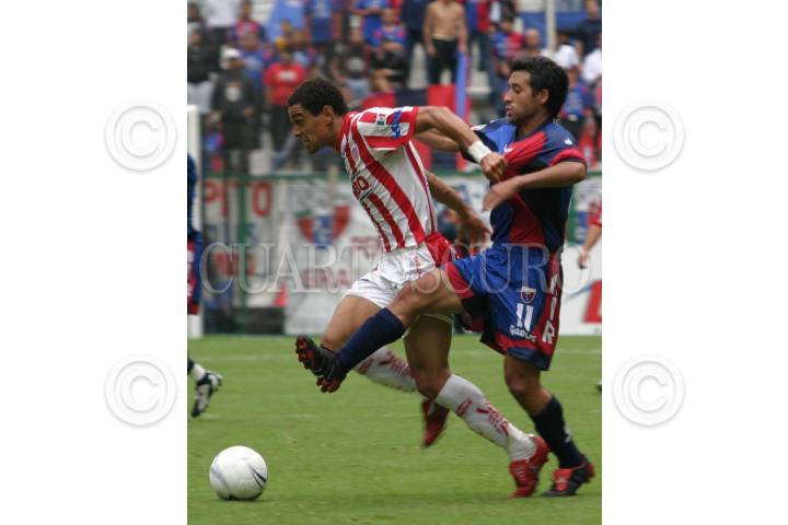 MEXICO, D.F. 20AGOSTO2005.- Diego Martínez, jugador de los Rayos del Necaxa y Javier Peña, de Atlante, sostienen una discusión durante el partido de la jornada 4 del torneo de apertura 2005 en el que Atlante venció 2 goles a 1 a los rayos del Necaxa. FOTO: Nelly Salas/CUARTOSCURO.COM