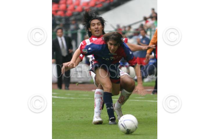 MEXICO, D.F. 20AGOSTO2005.- Diego Martínez, jugador de los Rayos del Necaxa y Javier Peña, de Atlante, sostienen una discusión durante el partido de la jornada 4 del torneo de apertura 2005 en el que Atlante venció 2 goles a 1 a los rayos del Necaxa. FOTO: Nelly Salas/CUARTOSCURO.COM