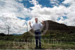 SAN MARTIN DE LAS PIRAMIDES, EDO MEX 21AGOSTO2005.-El precandidato panista a la presidencia de la república, Santiago Creel visitó San Martín de las Pirámides, población aledaña a las pirámides de Teotihuacan (atrás). FOTO: Ignacio González/CUARTOSCURO.COM