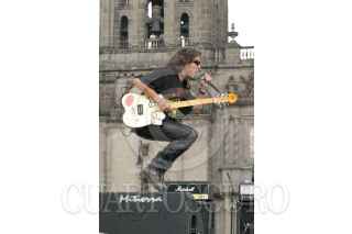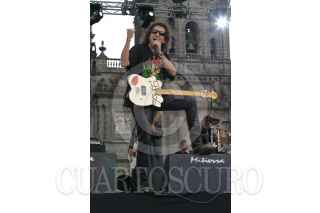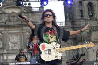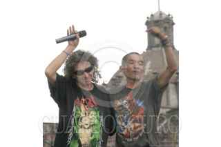 MEXICO, D.F. 21AGOSTO2005.- Alex Lora y el Tri participaron en el concierto Quierlos en beneficio de niños de la calle que se llevó a cabo en el zócalo de la ciudad de México. Alex recibió en el escenario a un de sus fans. FOTO: Nelly Salas/CUARTOSCURO.COM