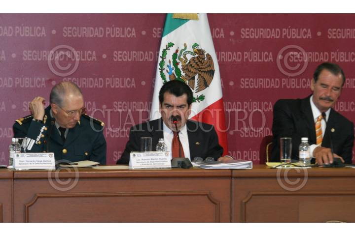 MEXICO, D.F. 22AGOSTO2005.- José Reyes Baez, gobernador de Chihuahua y Eduardo Burs, gobernador de Sonora al termino de los trabajos de la XIX sesión del Consejo Nacional de Seguridad que se llevo a cabo en la residencia oficial de los Pinos. FOTO: Nelly Salas/CUARTOSCURO.COM