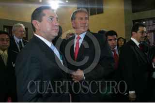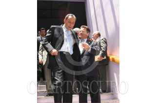 MEXICO, D.F. 22AGOSTO2005.- José Reyes Baez, gobernador de Chihuahua y Eduardo Burs, gobernador de Sonora al termino de los trabajos de la XIX sesión del Consejo Nacional de Seguridad que se llevo a cabo en la residencia oficial de los Pinos. FOTO: Nelly Salas/CUARTOSCURO.COM