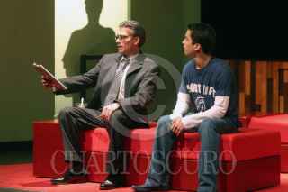 MEXICO. D.F., 22AGOSTO2005.- Los actores Juan carlos Barreto y Bernardo Benítez, durante una de las escenas de la puesta en escena Los Delitos Insignificantes dirigida por Francisco Franco, en el Teatro Helenico. FOTO: Moisés Pablo/CUARTOSCURO.COM