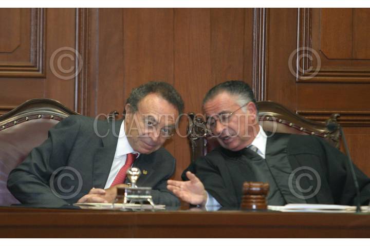 MEXICO, D.F. 23AGOSTO2005.- Guillermo Ortíz, presidente del Banco de México, Mariano Azuela, ministro presidente de la Suprema Corte de Justicia de la Nación y Pedro Cerisola, secretario de Comunicaciones y Transportes la ceremonia de entrega del archivo personal de Ignacio L. Vallarta a la SCJN. FOTO: Nelly Salas/CUARTOSCURO.COM