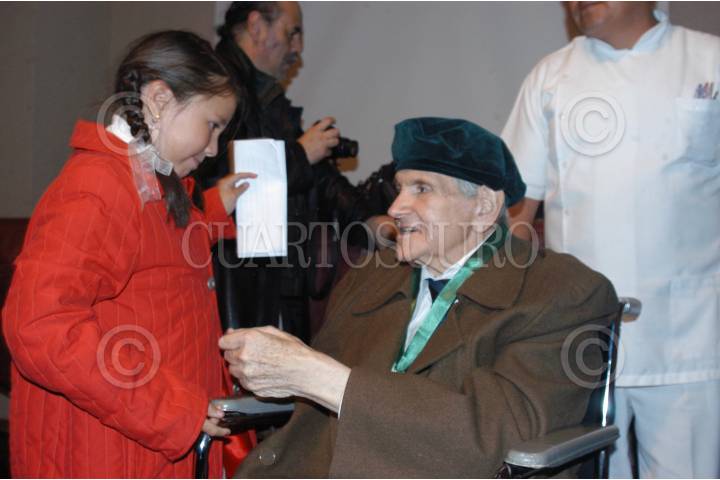 MEXICO D.F. 24AGOSTO2005.- En ceremonia celebrada en el auditorio del Museo Nacional de San Carlos, La Academia de Artes integró al fotógrafo Héctor García a la sección de gráfica de ese cuerpo colegiado en la que figuran destacados personajes del campo de las artes. Ademas fue inaugurada la exposición En el blanco, formada por 35 fotografías originales y representativas de la amplia producción de Héctor García, a manera de retrospectiva. Louise Noelle le colocó una medalla de reconocimiento al reprtero grafico. FOTO: Germán Romero/CUARTOSCURO.COM