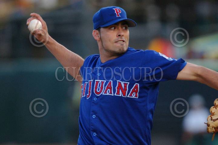 TIJUANA, BAJA CALIFORNIA 24AGOSTo2005.- Hugo Catellanos lanzador de los Potros de Tijuana se impuso al bateo de los Saraperos de Saltillo. FOTO: LMB/CUARTOSCURO.COM