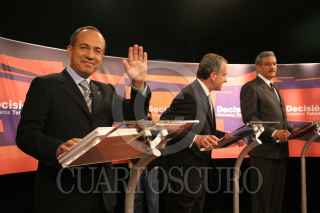 MEXICO, D.F., 09SEPTIEMBRE2005,- Alberto Cárdenas, precandidato panistas, a la presidencia, sostuvo un debate televisivo con Santiago Creel y Felipe Calderón, para presentar sus plataformas polítcas. FOTO: Moisés Pablo/CUARTOSCURO.COM
