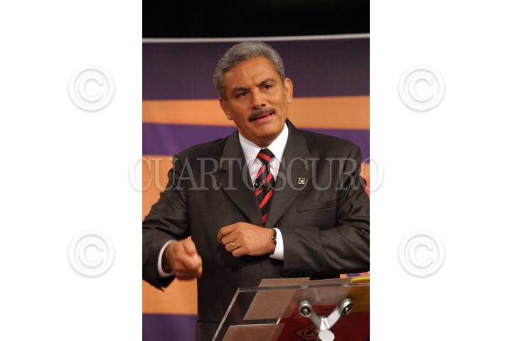 MEXICO, D.F., 09SEPTIEMBRE2005,- Alberto Cárdenas, precandidato panistas, a la presidencia, sostuvo un debate televisivo con Santiago Creel y Felipe Calderón, para presentar sus plataformas polítcas. FOTO: Moisés Pablo/CUARTOSCURO.COM