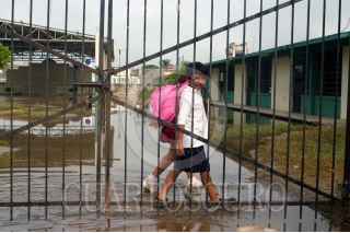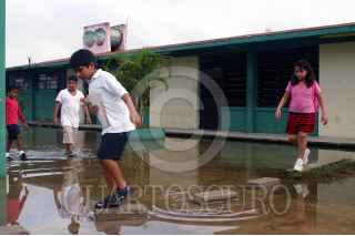 NACAJUCA, TABASCO, 09SEPTIEMBRE2005.- Alrededor de quinientos educandos de la Escuela Primaria Urbana Carlos A. Madrazo Becerra del ejido La Selva estan teniendo clases con adnegaciones fluviales debido a las lluvias. FOTO: Marco Polo Guzmán/CUARTOSCURO.COM