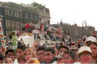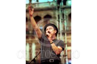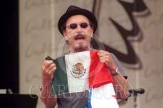 Rubén Blades saluda a la gente asistente a su concierto masivo de este domingo en el Zócalo capitalino. FOTO: Oswaldo Ramírez/CUARTOSCURO.COM