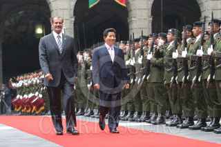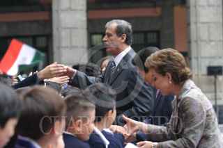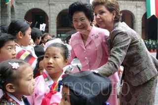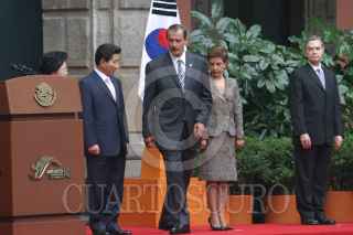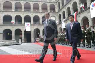 MEXICO, D.F. 09SEPTIEMBRE2005.- El presidente Vicente Fox se dipone a dar su mensaje de bienevenida a Roh Moo Hyun presidente de la República de Corea en el patio central de Palacio Nacional. FOTO: Nelly Salas/CUARTOSCURO.COM