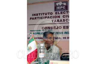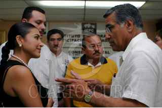 VILLAHERMOSA,TABASCO.-09SEPTIEMBRE2005.- Posterior a la presentación de la obra de Jurisprudencia, el Magistrado Presidente del Tribunal Electoral del Poder Judicial de Federación; Eloy Fuentes Cerda dialogó con diferentes ideologías partidistas, entre ellas la asambleísta priista Yenny Magdalena Rodriguez Aguilar. FOTO: Marco Polo Guzmán/CUARTOSCURO.COM