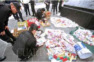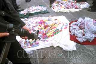 MÉXICO D.F.-09SEPTIEMBRE2005.- Cerca al metro Candelaria, en frente de la Cámara de Diputados, la Secretaría de Seguridad Pública decomisó una tanda de cohetes. FOTO: Oscar López/CUARTOSCURO.COM