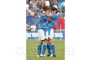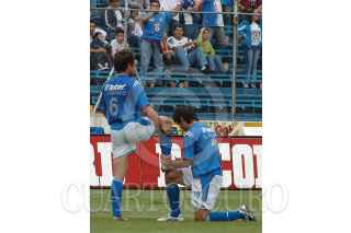 MEXICO, D.F. 10SEPTIEMBRE2005.- La máquina del Cruz Azul venció 5 goles a 2 a los potros de hierro del Atlante en la continuación de la jornada 7 del torneo de apertura 2005. César "Chelito" Delgado y Francisco "Kikín" Fonseca, delanteros del equipo Curz Azul, festejan el cuarto gol del equipo. FOTO: Iván Stephens/CUARTOSCURO.COM