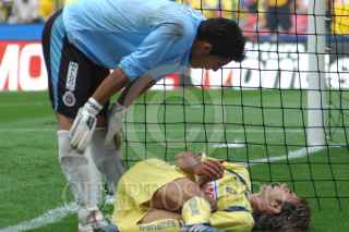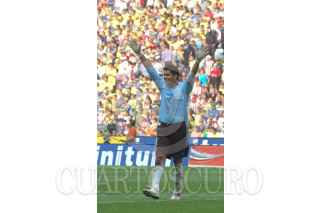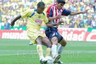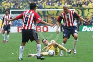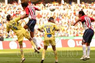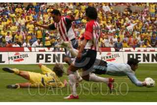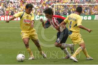 MEXICO, D.F. 11SEPTIEMBRE2005.- El portero de las Chivas de Guadalajara, Osvaldo Sánchez detiene un balón durante el clásico del futbol mexicano que se llevó a cabo esta tarde en el estadio Azteca de la ciudad de México. FOTO: Miguel Dimayuga/CUARTOSCURO.COM