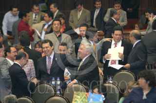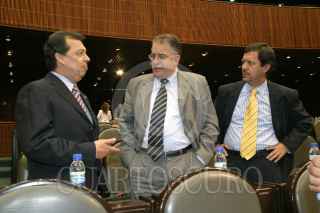 MEXICO, D.F. 12SEPTIEMBRE2005.- Los diputados priistas Angel Aguirre, Francisco Suárez Davila y Roberto Campa conversan previo a la sesión ordinaria en la cámara de diputados. FOTO: Nelly Salas/CUARTOSCURO.COM