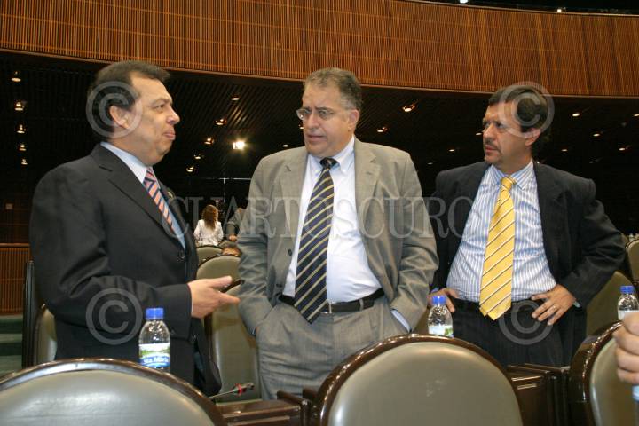 MEXICO, D.F. 12SEPTIEMBRE2005.- Los diputados priistas Angel Aguirre, Francisco Suárez Davila y Roberto Campa conversan previo a la sesión ordinaria en la cámara de diputados. FOTO: Nelly Salas/CUARTOSCURO.COM