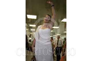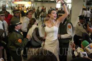 MEXICO, D.F., 27SEPTIEMBRE2005.- Carmen Campuzano, actriz y modelo, llegó al aeropuerto internacional del la Ciudad de México, después de su rehabilitación por drogas me un centro de ayuda en Mazatlán. En la imagen la modelo corre de los periodistas que la acosaron desde el primer momento. FOTO: Moisés Pablo/CUARTOSCURO.COM
