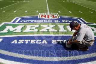 MEXICO D.F. 28AGOSTO2205.- Los preparativos para que el proximo domingo se lleve a cabo, por primera vez en la historia, un partido de temporada regular de la NFL fuera de la unión americana. El encuentro entre los cardinales de arizona y los 49s de San Francisco se jugará en el Estadio Azteca. FOTO: Miguel Dimayuga/CUARTOSCURO.COM