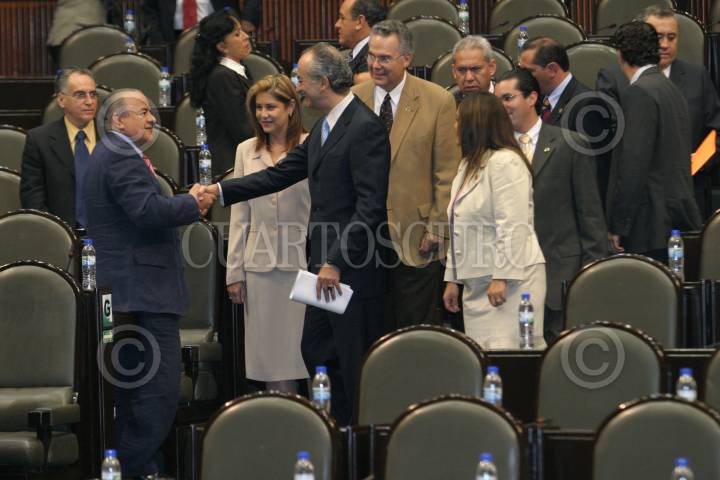 MEXICO, D.F. 29SEPTIEMBRE2005.- Francisco Gil Díaz, secretario de Hacienda y Credito Público a su llegada al salón de sesiones de la cámara de diputados donde compareció ante el pleno de la cámara. FOTO: Nelly Salas/CUARTOSCURO.COM