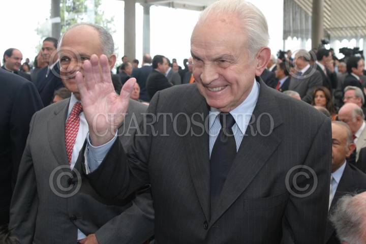 MEXICO, D.F, 29SEPTIEMBRE2005.- Alfredo Harp Helú, empresario y Lorenzo Servitje, fundador del grupo BIMBO, durante la firma el Acuerdo Nacional para la Unidad, el Estado de Derechos, el Desarrollo, la Inversión y el Empleo, en el Alcazar del Castillo de Chapultépec. FOTO: Moisés Pablo/CUARTOSCURO.COM