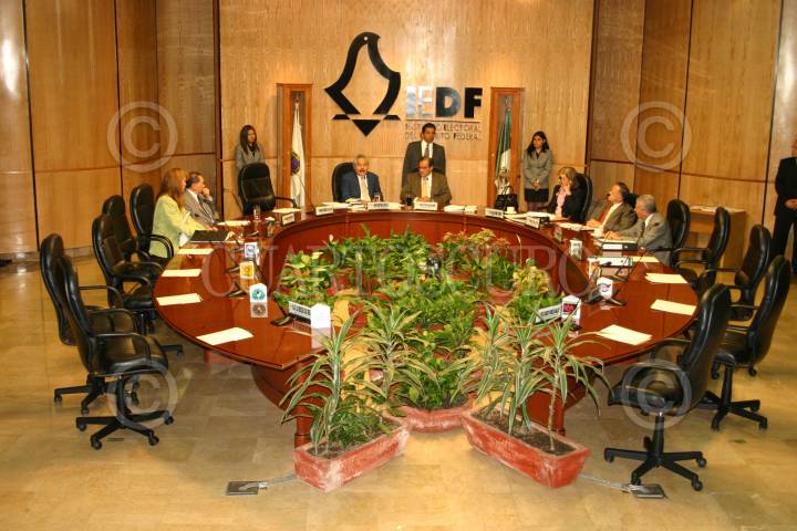 MEXICO D.F. 30SEPTIEMBRE2005.- Javier Santiago Castillo, consejero presidente y Adolfo Riva Palacio Neri Secretario ejecutivo del instituto electoral del Distrito Federal durante la sesión extraordinaria. FOTO: Leonardo Casas/CUARTOSCURO.COM