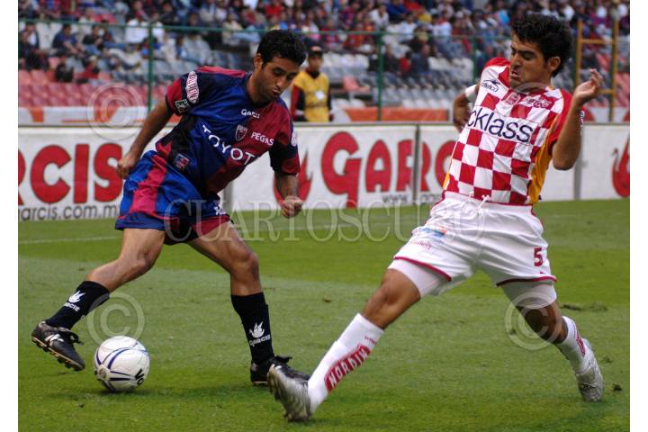 MÉXICO, D.F. 15OCTUBRE2005.- Alejandro Villalobos (Tecos), Sebastián González "Chamagol" (Atlante) y Carlos Ayala (Tecos) disputan un balón en el partido de la jornada 12 del torneo de apertura 2005 realizado en el Estadio Azteca donde el marcador final fue de 1 gol a cero favor Tecos. FOTO: Iván Stephens/CUARTOSCURO.COM