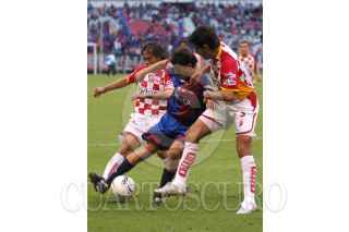 MÉXICO, D.F. 15OCTUBRE2005.- Alejandro Villalobos (Tecos), Sebastián González "Chamagol" (Atlante) y Carlos Ayala (Tecos) disputan un balón en el partido de la jornada 12 del torneo de apertura 2005 realizado en el Estadio Azteca donde el marcador final fue de 1 gol a cero favor Tecos. FOTO: Iván Stephens/CUARTOSCURO.COM