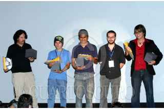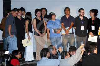 MORELIA, MICHOACAN 15OCTUBRE2005.- El presidente del Festival internacional de Morelia durante la clausura de la 3era edición; atrás Daniela Michel directora y Cuauhtémoc Cardenas Batel, subdirector del festival. FOTO: Miguel Dimayuga/CUARTOSCURO.COM