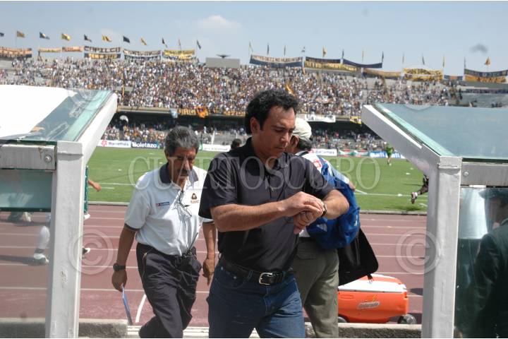 MÉXICO, D.F. 16OCTUBRE2005.- Hernán Cristante, portero de Toluca, y Antonio De Nigris (pumas) pelean un balón en el encuentro de la jornada 12 del torneo de apertura 2005 en el que los Pumas de la UNAM perdieron 3 goles a cero ante los Diablos Rojos de Toluca en el Estadio de Ciudad Universitaria. FOTO: Iván Stephens/CUARTOSCURO.COM
