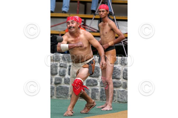 MEXICO, D.F., 17OCTUBRE2005.- Se realizó la inauguración de una cancha de juego de pelota prehispánico en el Museo Nacional de Antropología. En la imagen una desmostración de Ulama en Tregua por parte de Miguel Montoya Camacho. FOTO: Moisés Pablo/CUARTOSCURO.COM