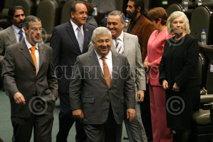 MEXICO, D.F. 18OCTUBRE2005.- Los diputados Francisco Arreaga, Manlio Fabio Beltrones y Marcela Guerra conversan previo a la sesión solemne en la cámara de diputados. FOTO: Nelly Salas/CUARTOSCURO.COM