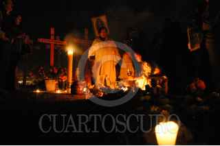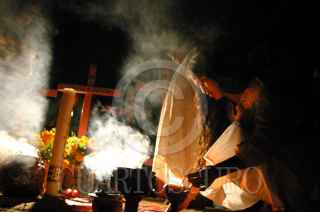 CD. JUÁREZ, CHIHUAHUA 31OCTUBRE2005.- Al pie de las cruces erigidas en memoria de ocho de las mas de trescientas mujeres asesinadas en esta frontera, se ve a las Integrantes del Grupo de Mujeres de la Promotora contra el Neoliberalismo de Chiapas, durante ceremonia de limpia efectuada en memoria de las victimas del feminiciadio en esta ciudad fronteriza. Las mujeres, que partieron en la caravana denominada "El viento de las mil voces" partio hoy por la mañana de la ciudad de mexico rumbo a esta frontera para portestar en contra de la violencia hacia las mujeres. Esto como parte de las actividades del dia de muertos. FOTO: JGuadalupe Perez/CUARTOSCURO.COM