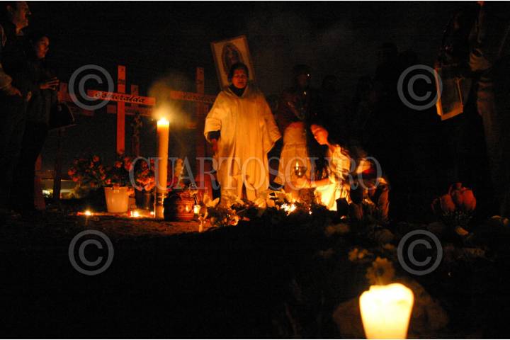 CD. JUÁREZ, CHIHUAHUA 31OCTUBRE2005.- Al pie de las cruces erigidas en memoria de ocho de las mas de trescientas mujeres asesinadas en esta frontera, se ve a las Integrantes del Grupo de Mujeres de la Promotora contra el Neoliberalismo de Chiapas, durante ceremonia de limpia efectuada en memoria de las victimas del feminiciadio en esta ciudad fronteriza. Las mujeres, que partieron en la caravana denominada "El viento de las mil voces" partio hoy por la mañana de la ciudad de mexico rumbo a esta frontera para portestar en contra de la violencia hacia las mujeres. Esto como parte de las actividades del dia de muertos. FOTO: JGuadalupe Perez/CUARTOSCURO.COM