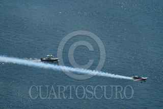 ACAPULCO,GUERRERO.-01NOVIEMBRE2005.- Una avioneta pasa muy cerca de una embarcación en La PLaya Condesa durante el Alextremo Airshow 2005 Foto: Eric Miralrío/CUARTOSCURO.COM