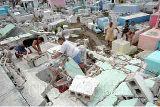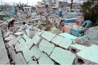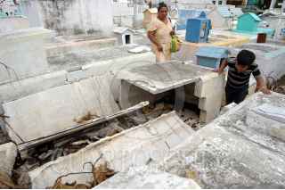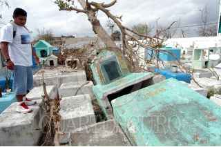 CANCUN , QUINTANA ROO 02NOVIEMBRE2005.- La barda y diversas tumbas del pateon municipal fueron destruidos por el huracan ¨Wilma¨, decenas de familias visitan a sus fieles difuntos entre los escombros del cementerio. FOTO: Amaranta Prieto/CUARTOSCURO.COM