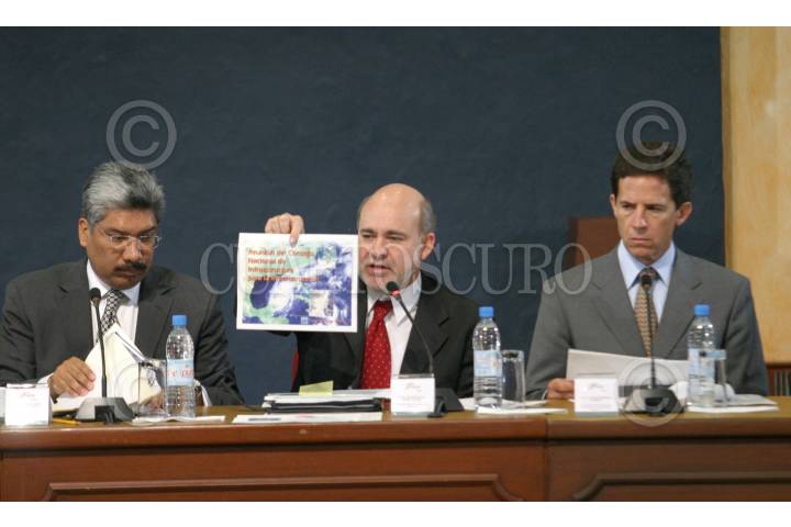 MEXICO, D.F. 02NOVIEMBRE2005.- Julio Frenk Mora, secretario de Salud conversa con Josefina Vazquez Mota, secretaria de Desarrollo Social previo a la Tercera Sesión Extraordinaria del Consejo Nacional de Infraestructura. FOTO: Nelly Salas/CUARTOSCURO.COM
