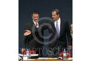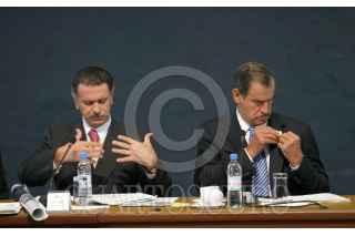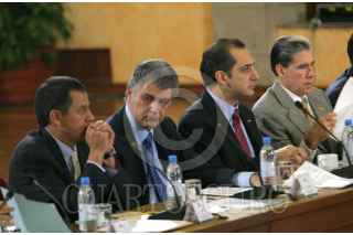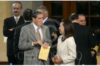 MEXICO, D.F. 02NOVIEMBRE2005.- Julio Frenk Mora, secretario de Salud conversa con Josefina Vazquez Mota, secretaria de Desarrollo Social previo a la Tercera Sesión Extraordinaria del Consejo Nacional de Infraestructura. FOTO: Nelly Salas/CUARTOSCURO.COM